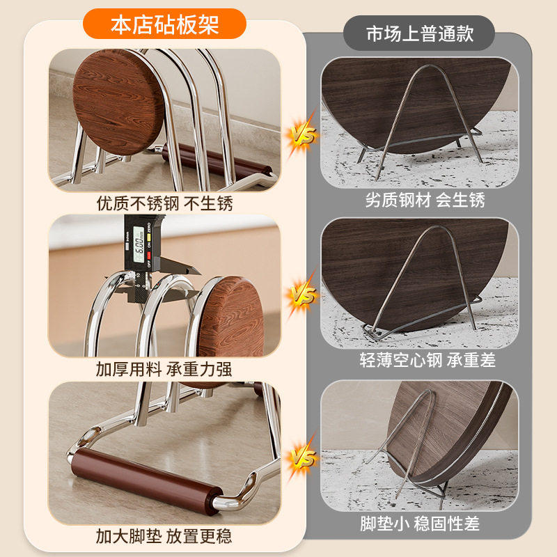 📚 中古风砧板架厨房台面收纳置物架锅盖架子案板菜板放置架垫不锈钢