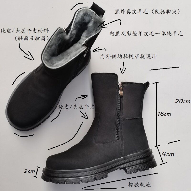 📚 羊皮毛一体女鞋真皮纯羊毛外贸保暖防滑中筒加厚东北大棉雪地靴冬