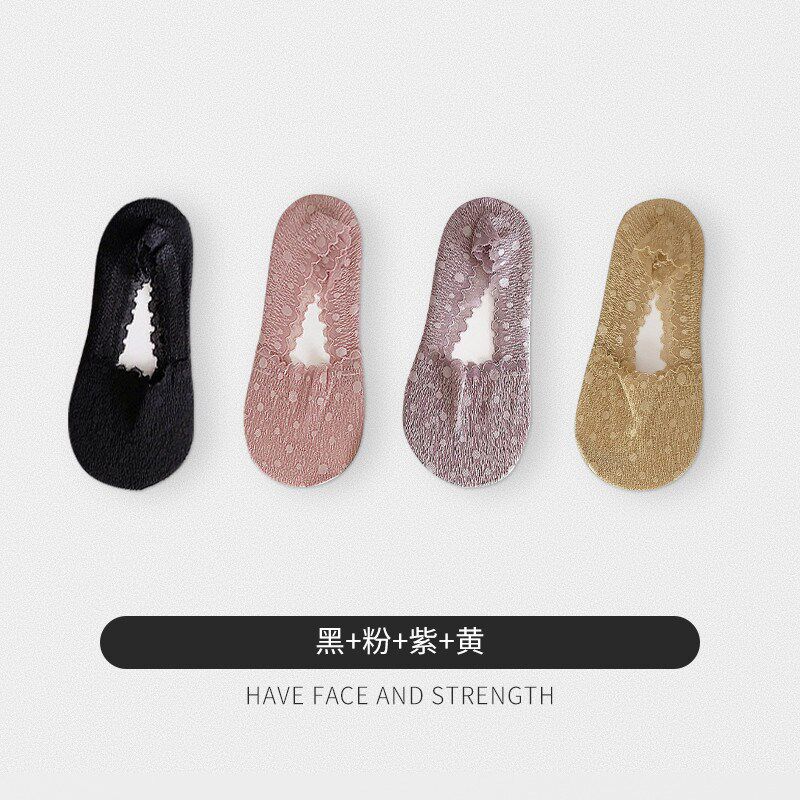 📚 蕾丝袜子船袜女短袜浅口隐形硅胶防滑不掉跟夏天薄款低帮黑色新款