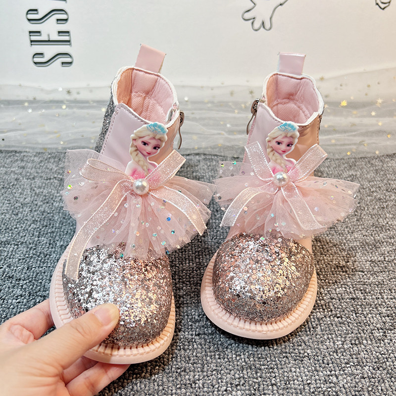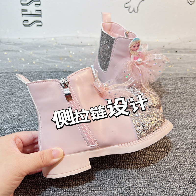 📚 粉色女童水晶靴子儿童冬季加绒鞋子女款洋气马丁靴春秋款2026新款