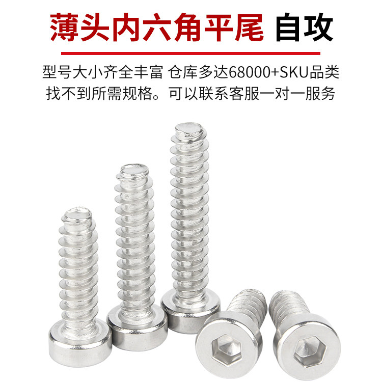 📚 304不锈钢薄头内六角平尾自攻螺丝HB圆柱头杯头螺钉M2M3.5M4M5M6