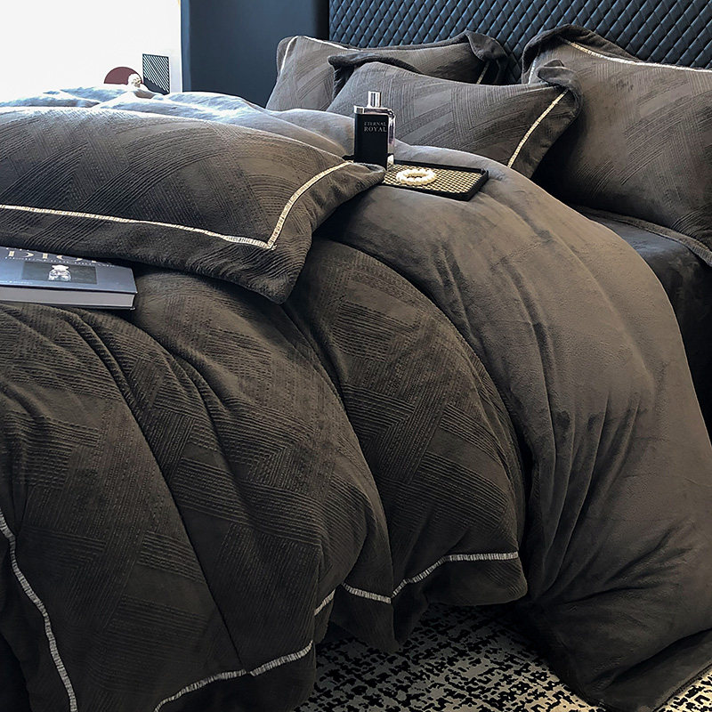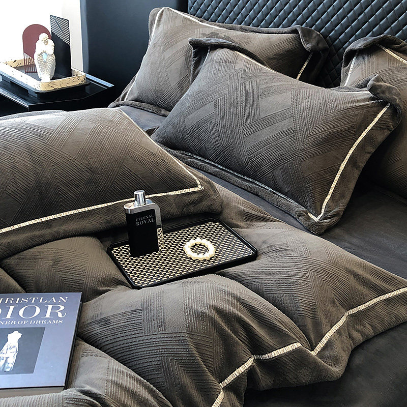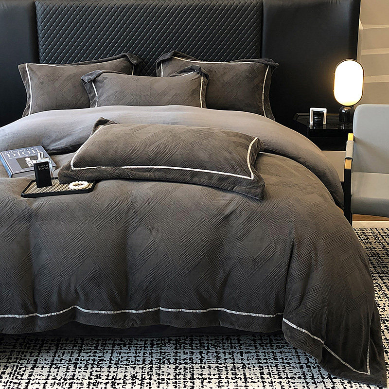 📚 冬季A类牛奶绒四件套法兰绒双面绒加厚保暖珊瑚绒被套罩床上用品4