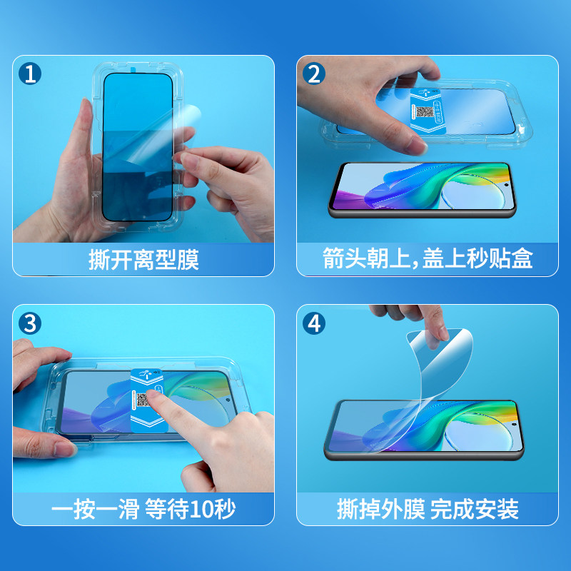 📚 适用vivo Y100i秒贴盒Y78t钢化膜y77e无尘仓Y35m+全覆盖Y7/Y5/Y3系列贴膜神器Y36i手机1/2/3/4/5/6/7防摔保护