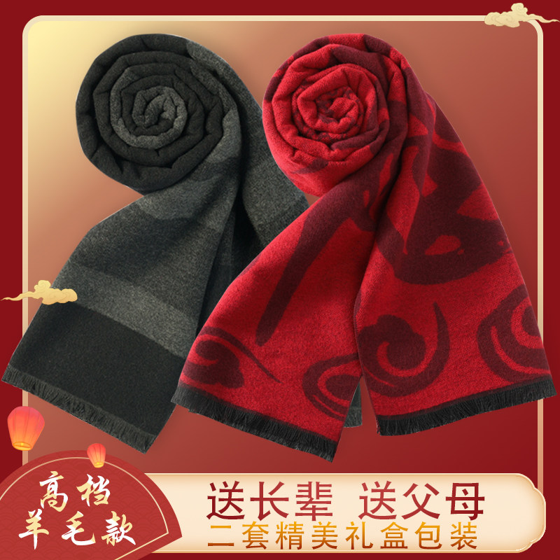 📚 老人围巾秋冬季情侣款中年老年男女爸爸妈妈爷爷奶奶围脖两条礼盒