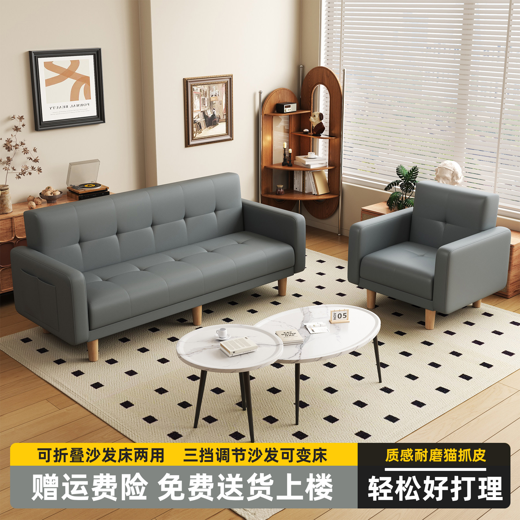 📚 沙发小户型客厅2025新款简约现代三人位出租房布艺折叠沙发床两用