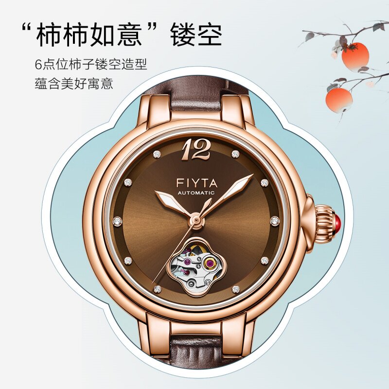 📚 飞亚达柿柿如意倾城系列机械女表时尚镂空小众手表女