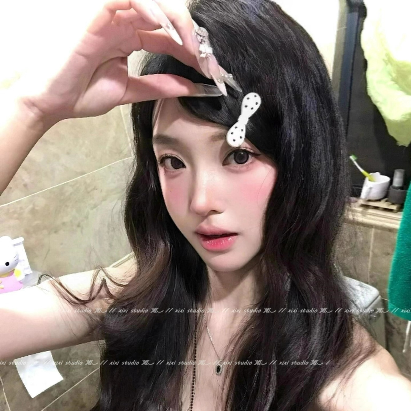 📚 鞠婧祎同款韩版黑白波点蝴蝶结发夹女百搭鸭嘴边夹复古可爱发饰
