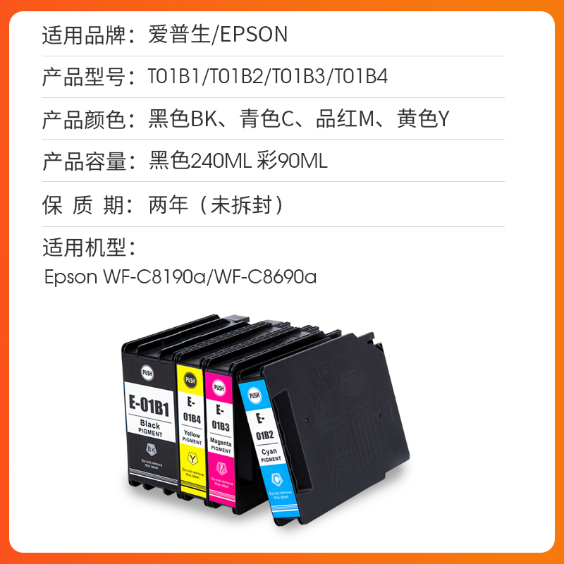 📚 近墨者兼容爱普生epson C8690a打印机T01B墨盒WF-C8190a打印机T01B1 T01B4 C8690打印机6714维护箱彩色颜料墨