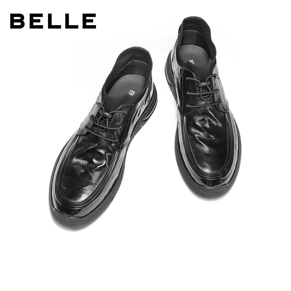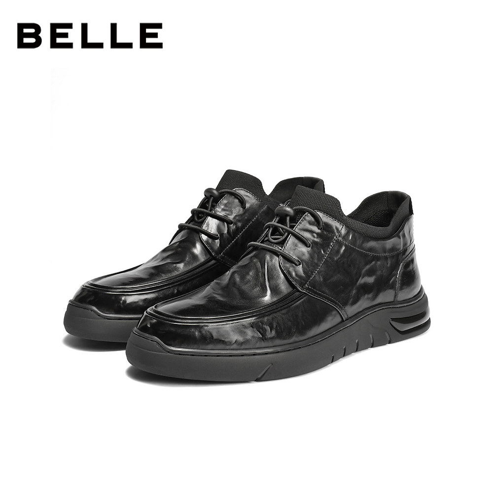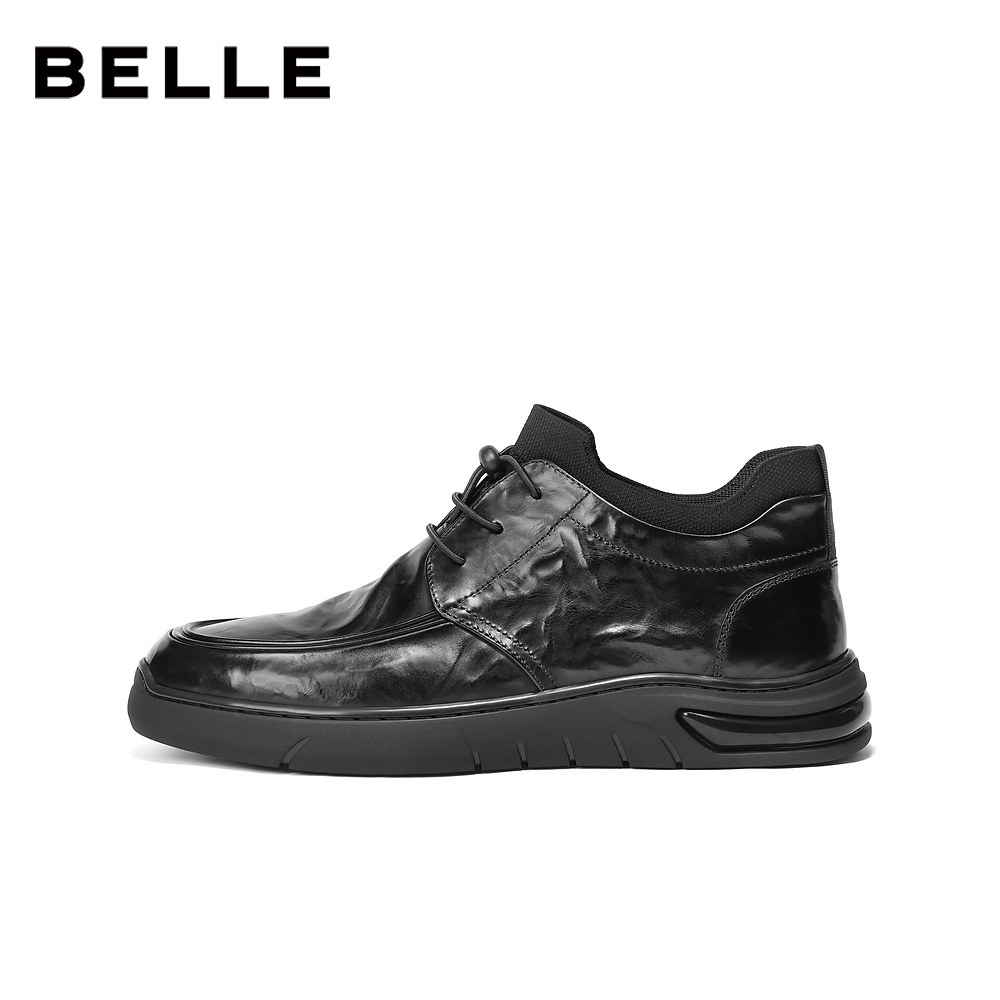 📚 百丽男鞋高帮加绒休闲真牛皮鞋男士新冬商场款商务短靴8VW01DD5