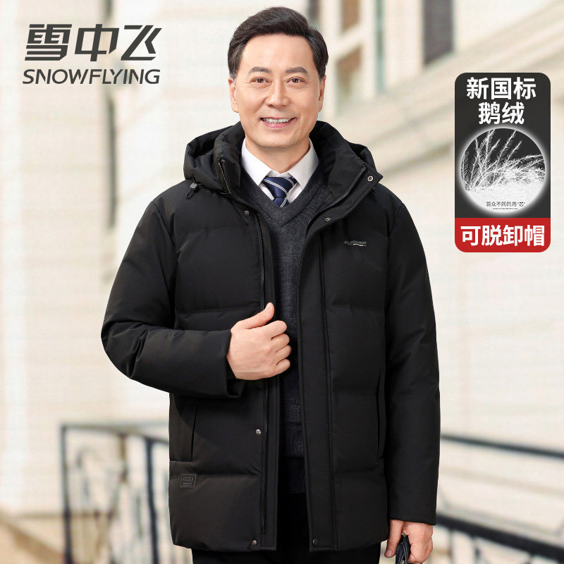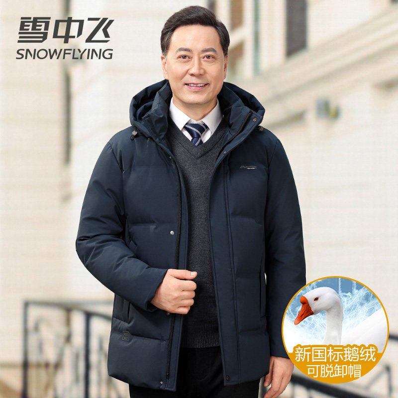 📚 雪中飞羽绒服男中长款加厚保暖商务休闲爸爸装高档鹅绒服冬季外套