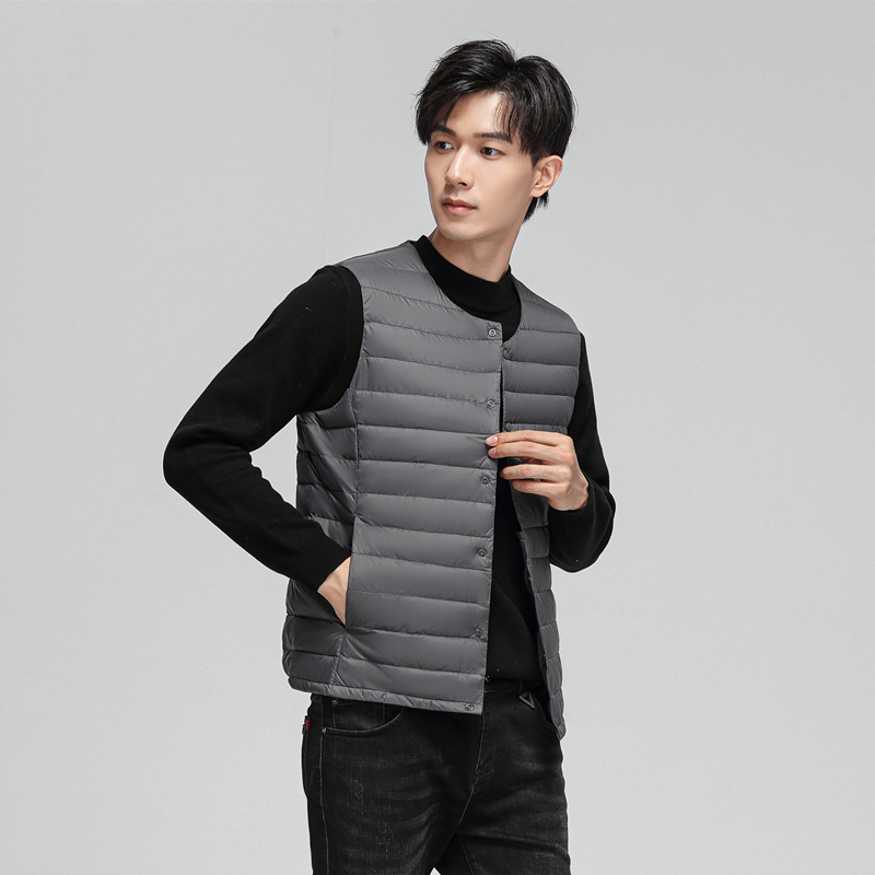 📚 2025冬新款男圆领羽绒马甲轻薄背心内穿马夹短款大码保暖无领坎肩
