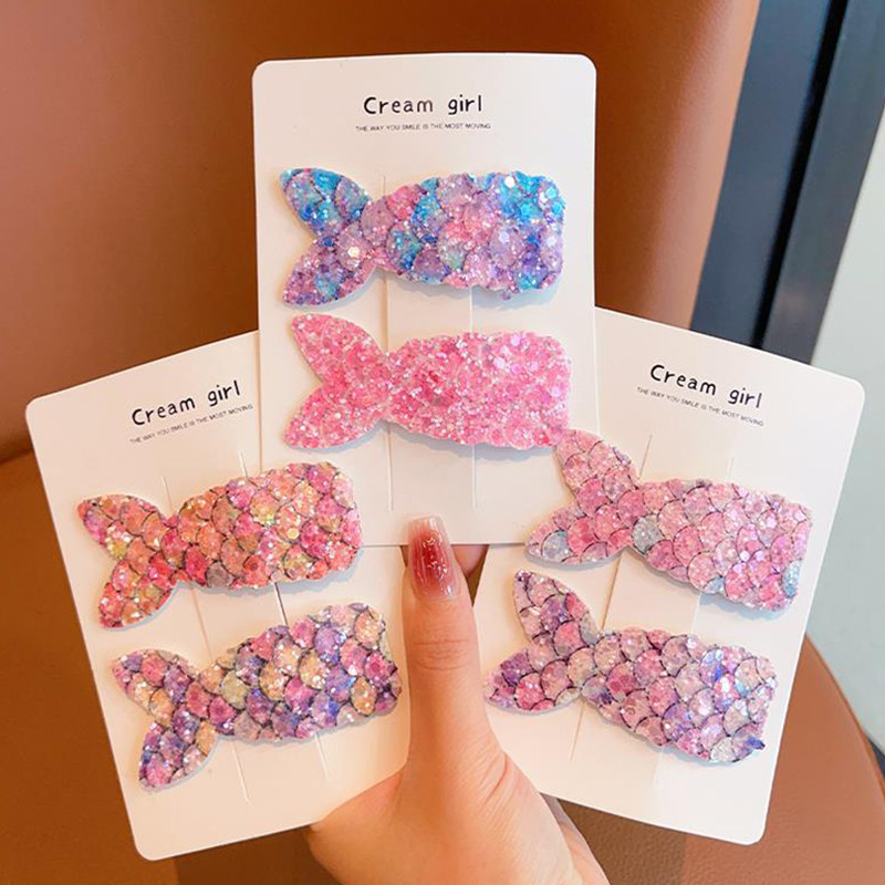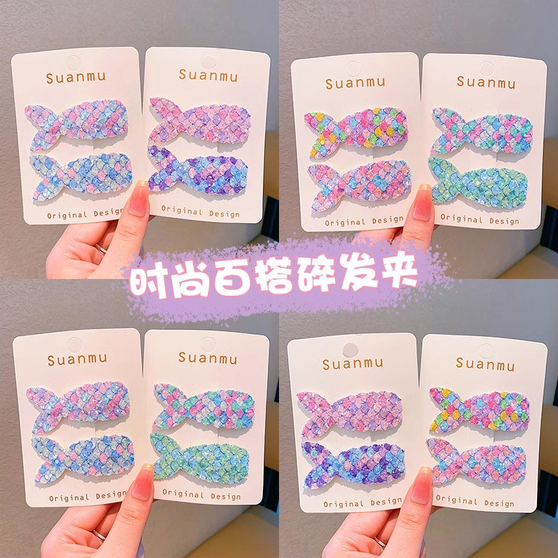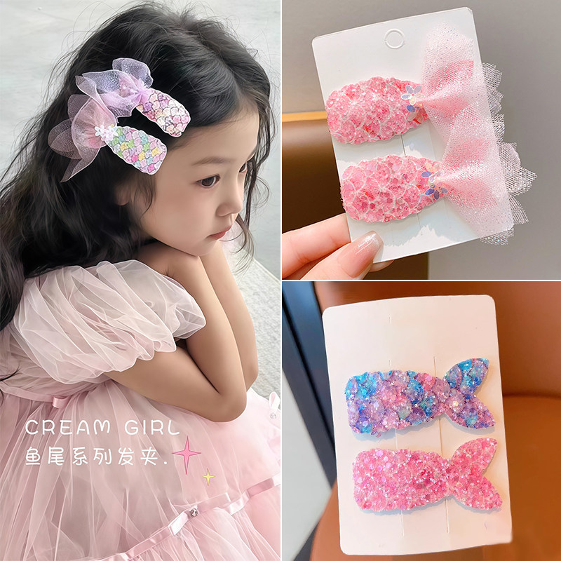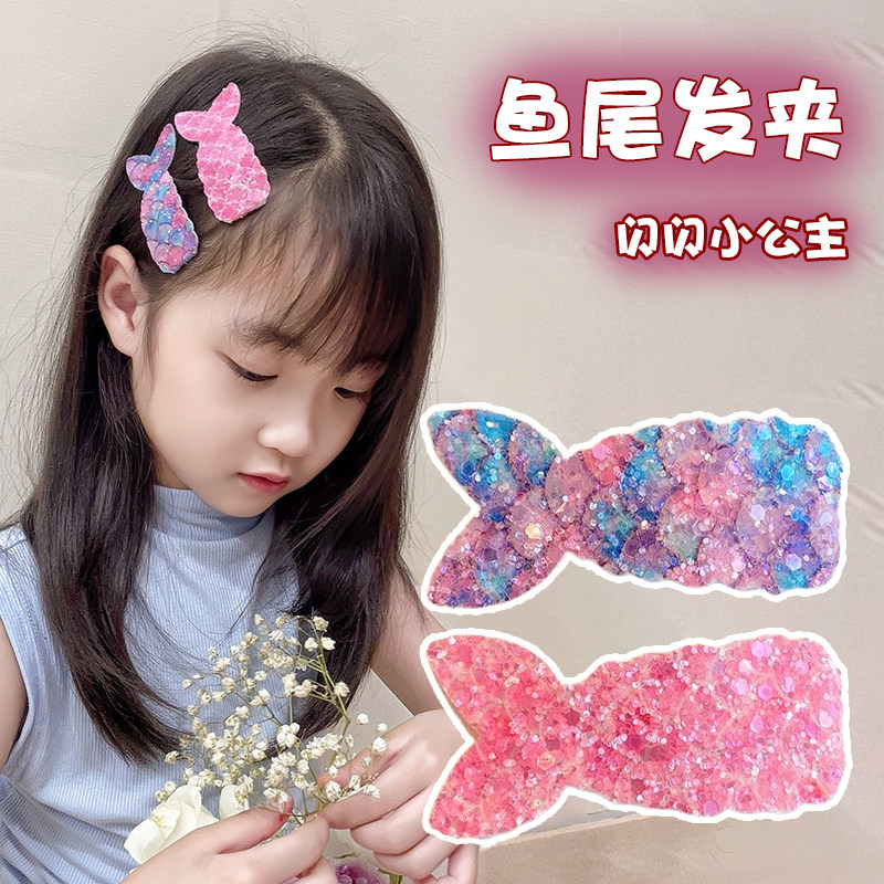 📚 春季儿童彩色亮片闪闪美人鱼发夹公主女童刘海侧边夹bb夹女孩发卡