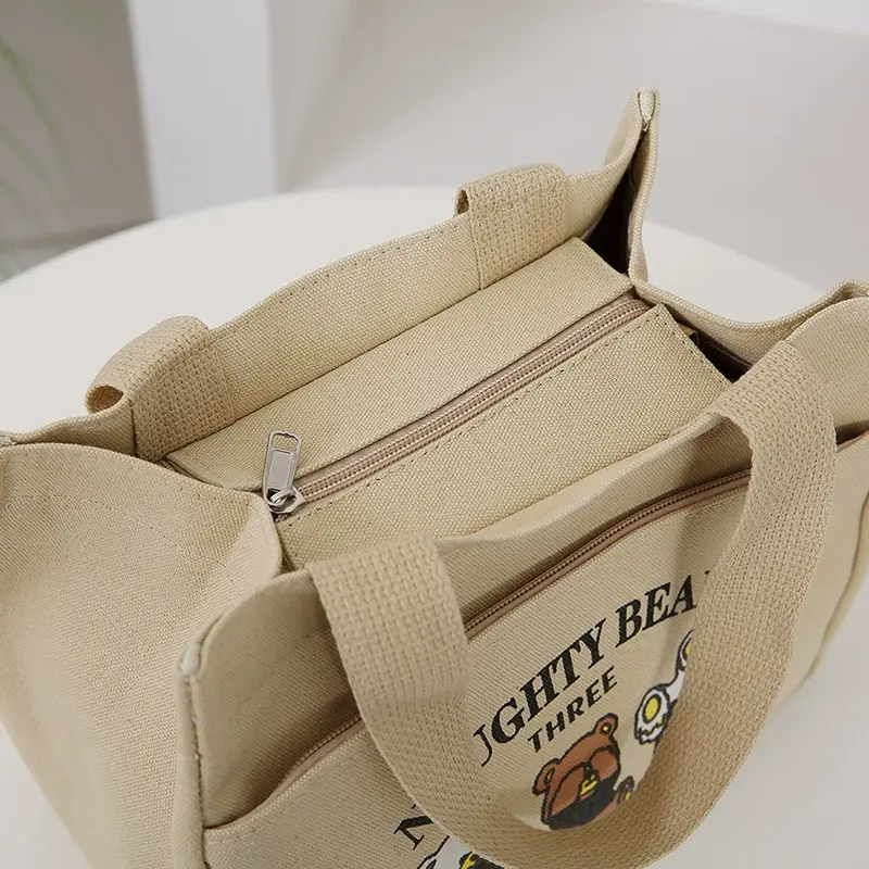 📚 2025新款出门上班族杂物小拎包拉链洋气网红盒饭手提袋帆布女通勤