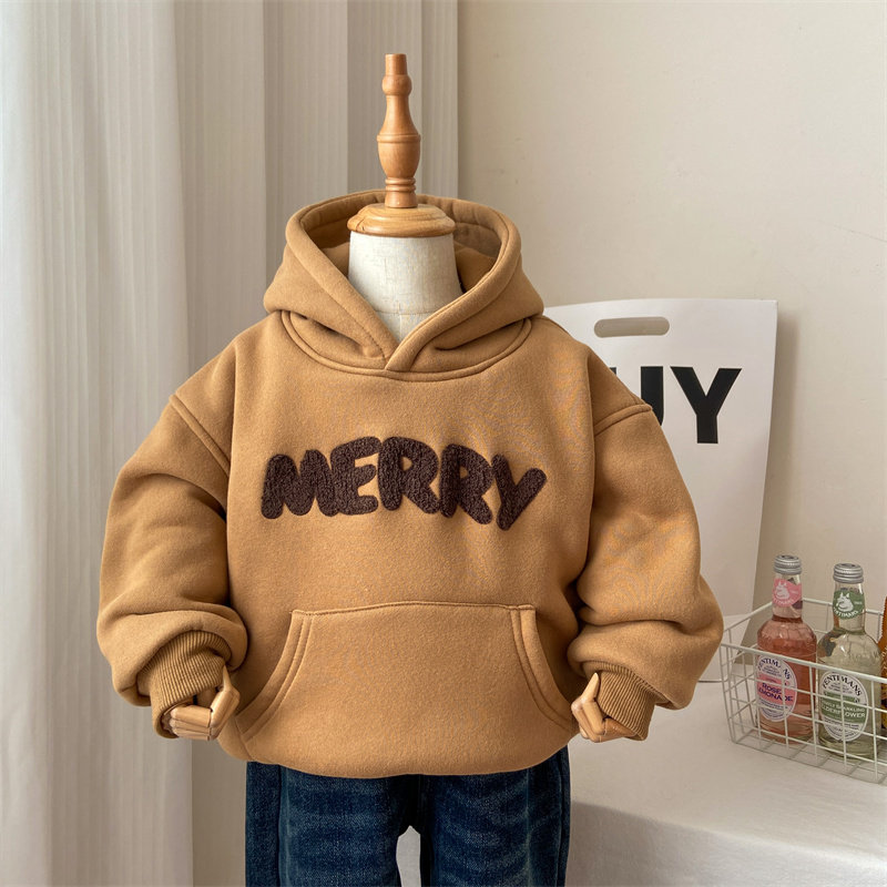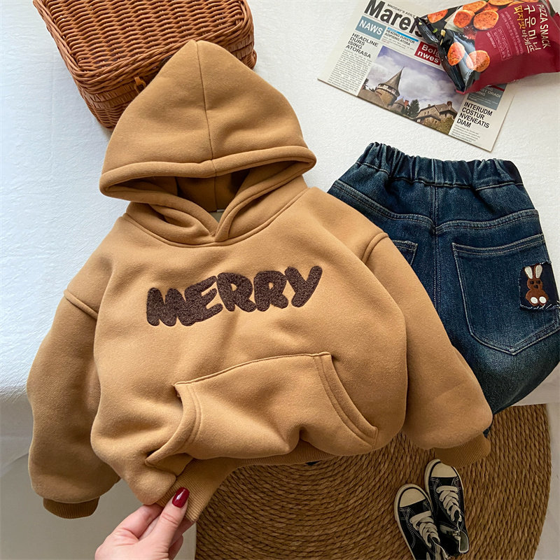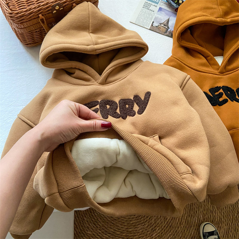 📚 女童加绒卫衣小童韩版潮加厚洋气2岁6儿童冬季带帽上衣男童秋冬装