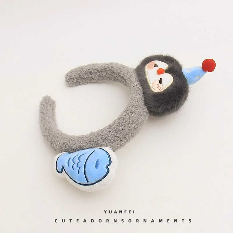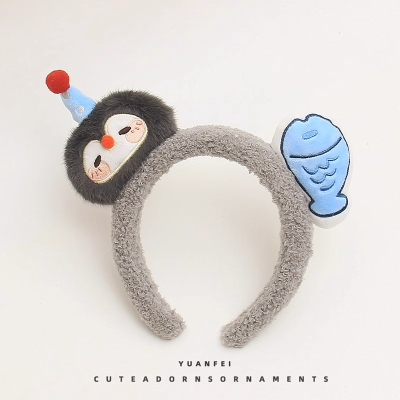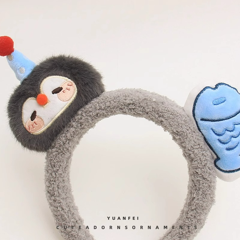 📚 创意企鹅小鱼发箍可爱萌趣毛绒卡通头饰少女拍照洗脸发卡搞怪头箍