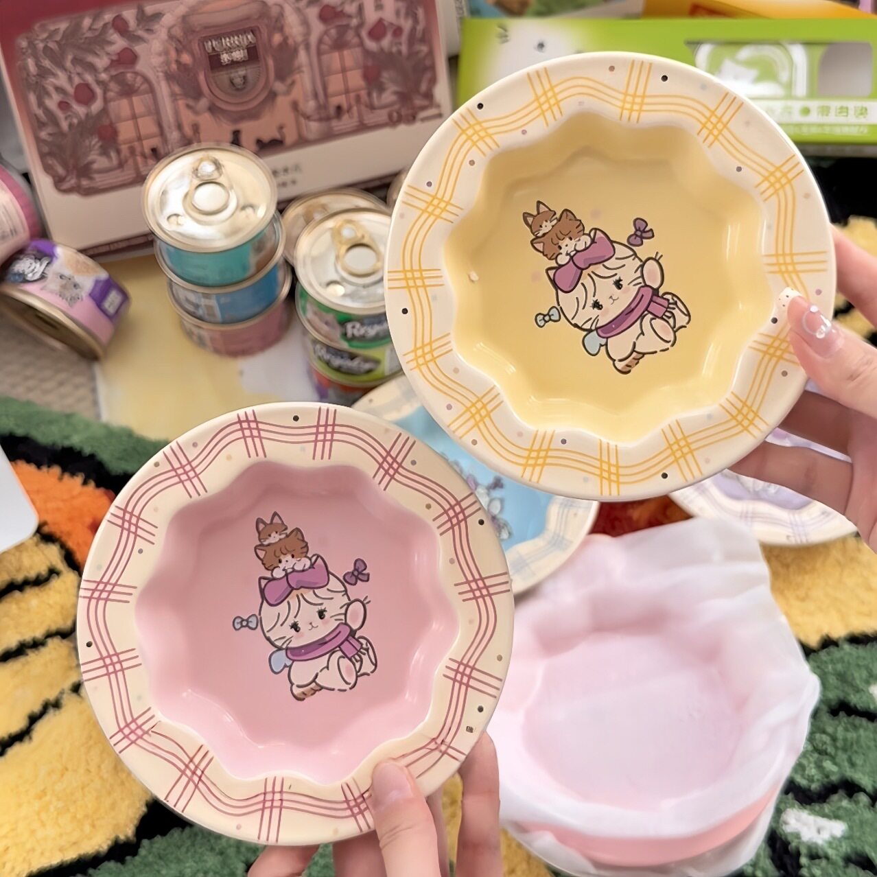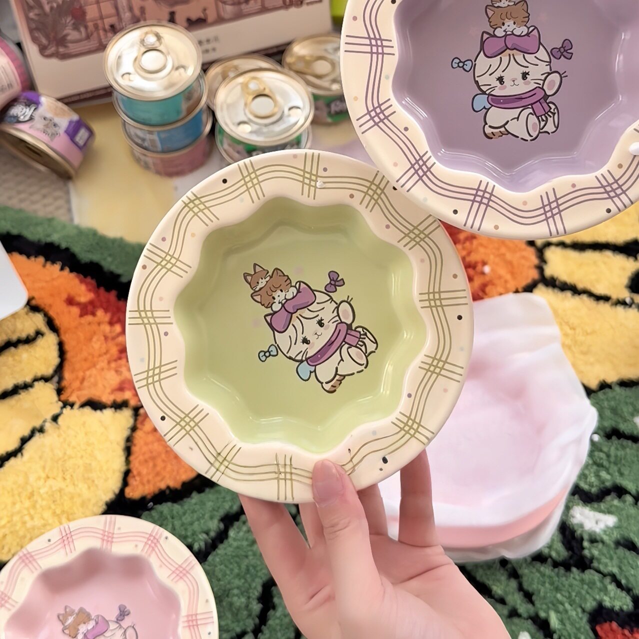 📚 mikko同款花边猫碗宠物陶瓷饭碗吃粮喝水罐头猫咪狗狗小食盆