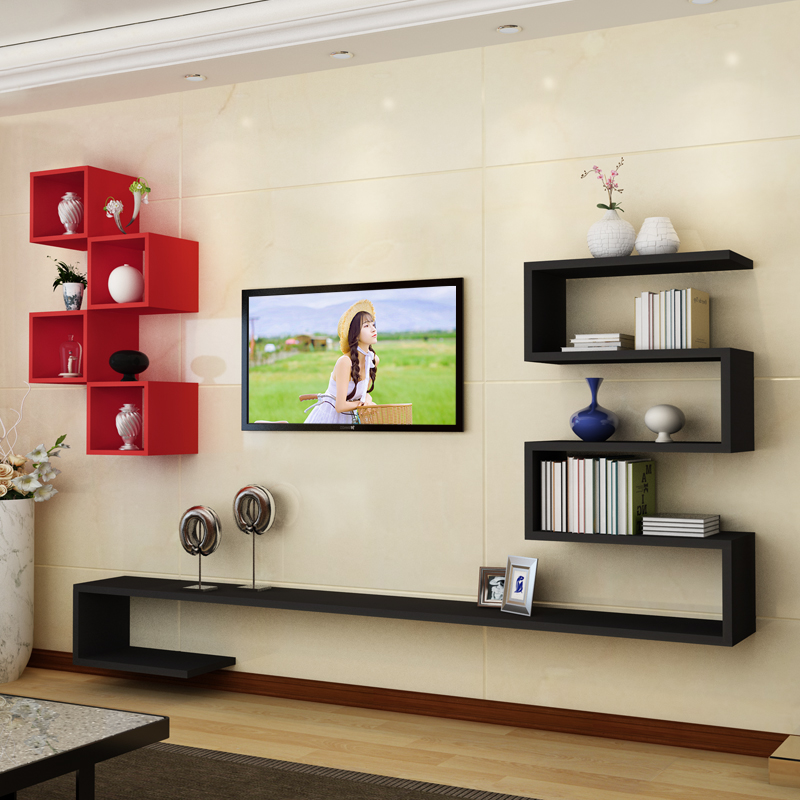 📚 创意电视背景墙装饰架墙上置物架挂墙实木板墙壁书架客厅北欧隔板
