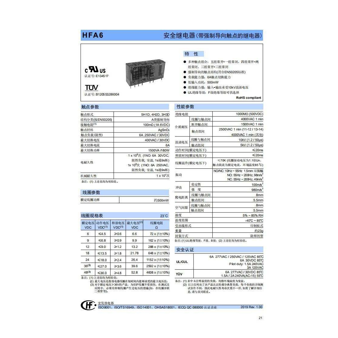 📚 HFA6-24-5H1DTG 继电器电流6A 5组常开