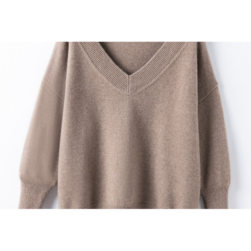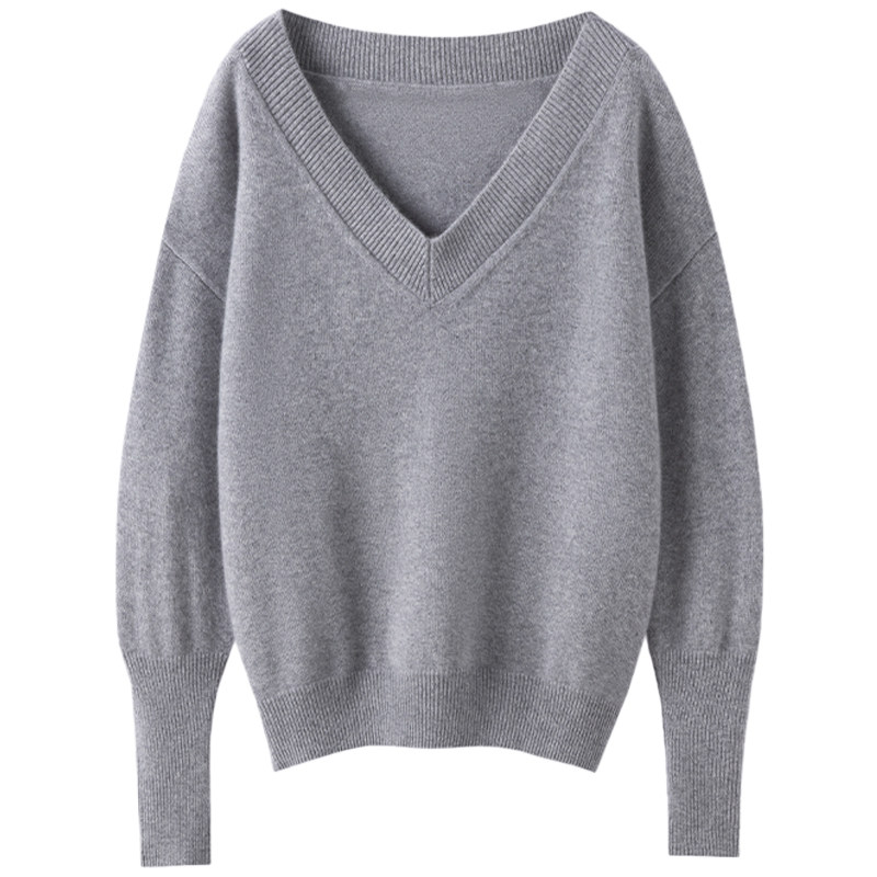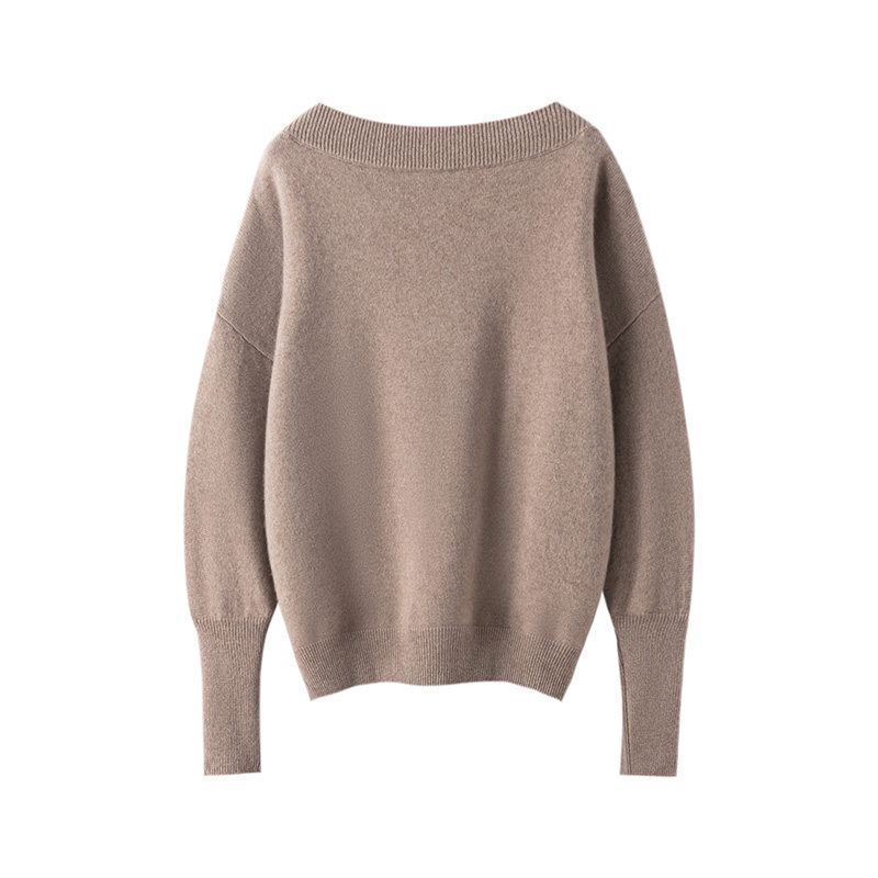 📚 相约布拉格!一字大V领山羊绒衫女套头纯羊绒毛衣针织衫宽松加厚