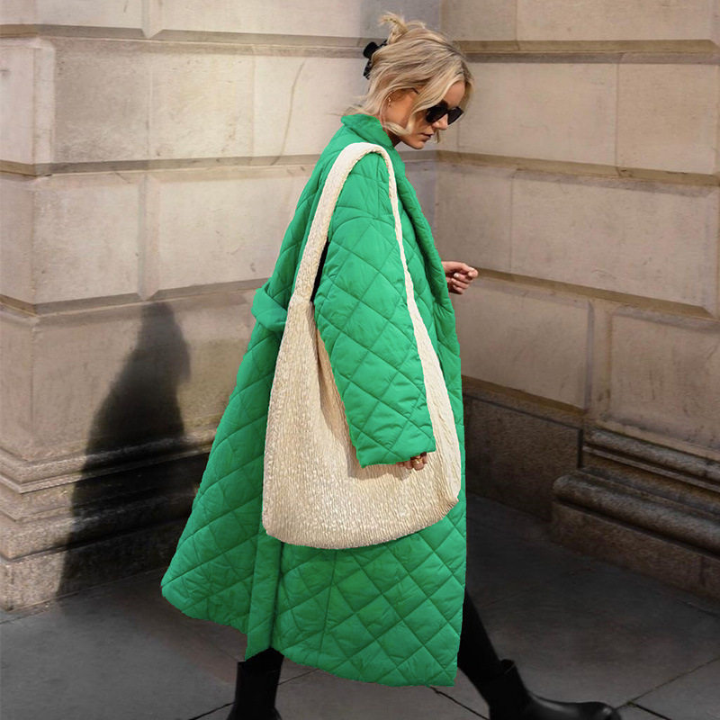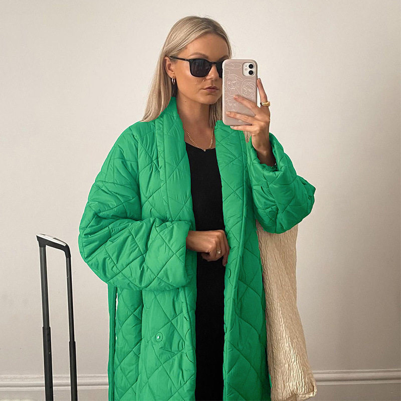 📚 2023秋冬街头绿色棉服简约系带外套 Winter cotton jacket women
