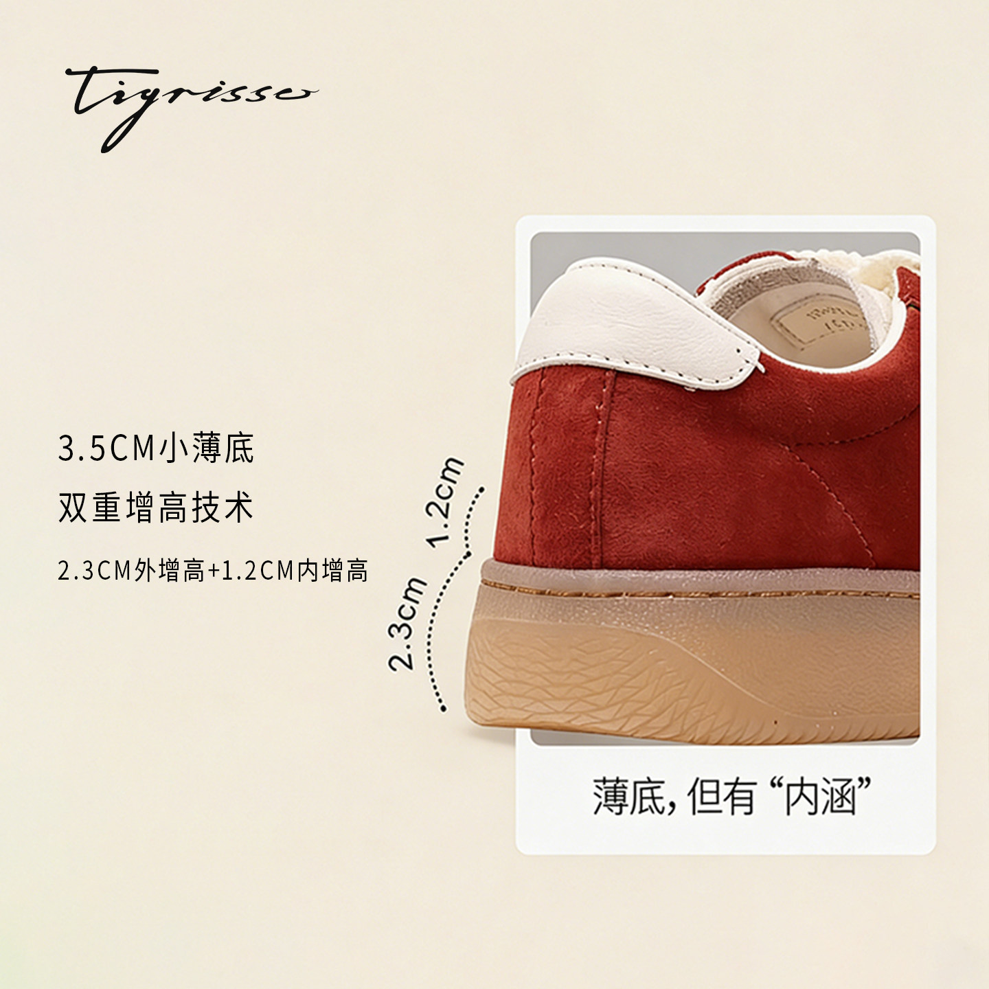 📚 张婧仪美洋明星同款糖果德训蹀愫增高3.5运动薄底休闲鞋红色鞋子