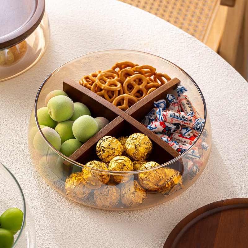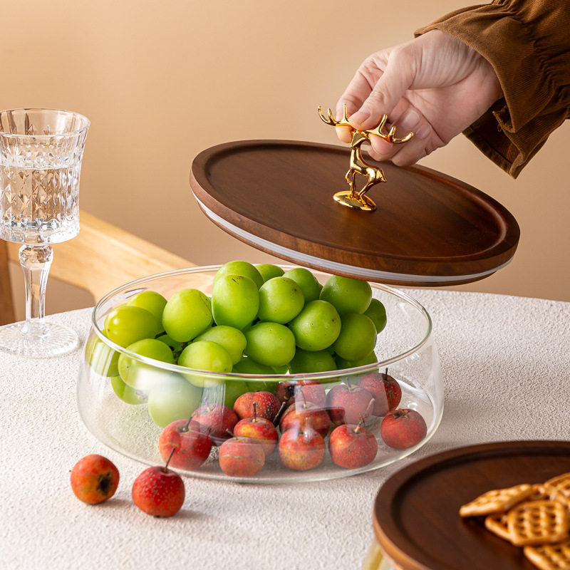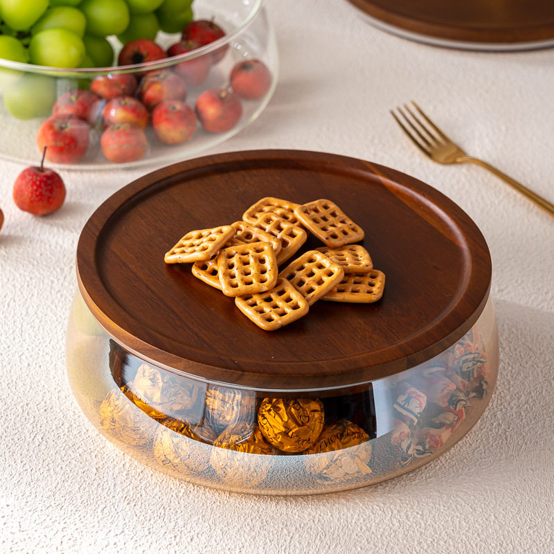 📚 相思木密封玻璃果盘坚果干果盒家用客厅糖果水果盘茶几零食收纳盘