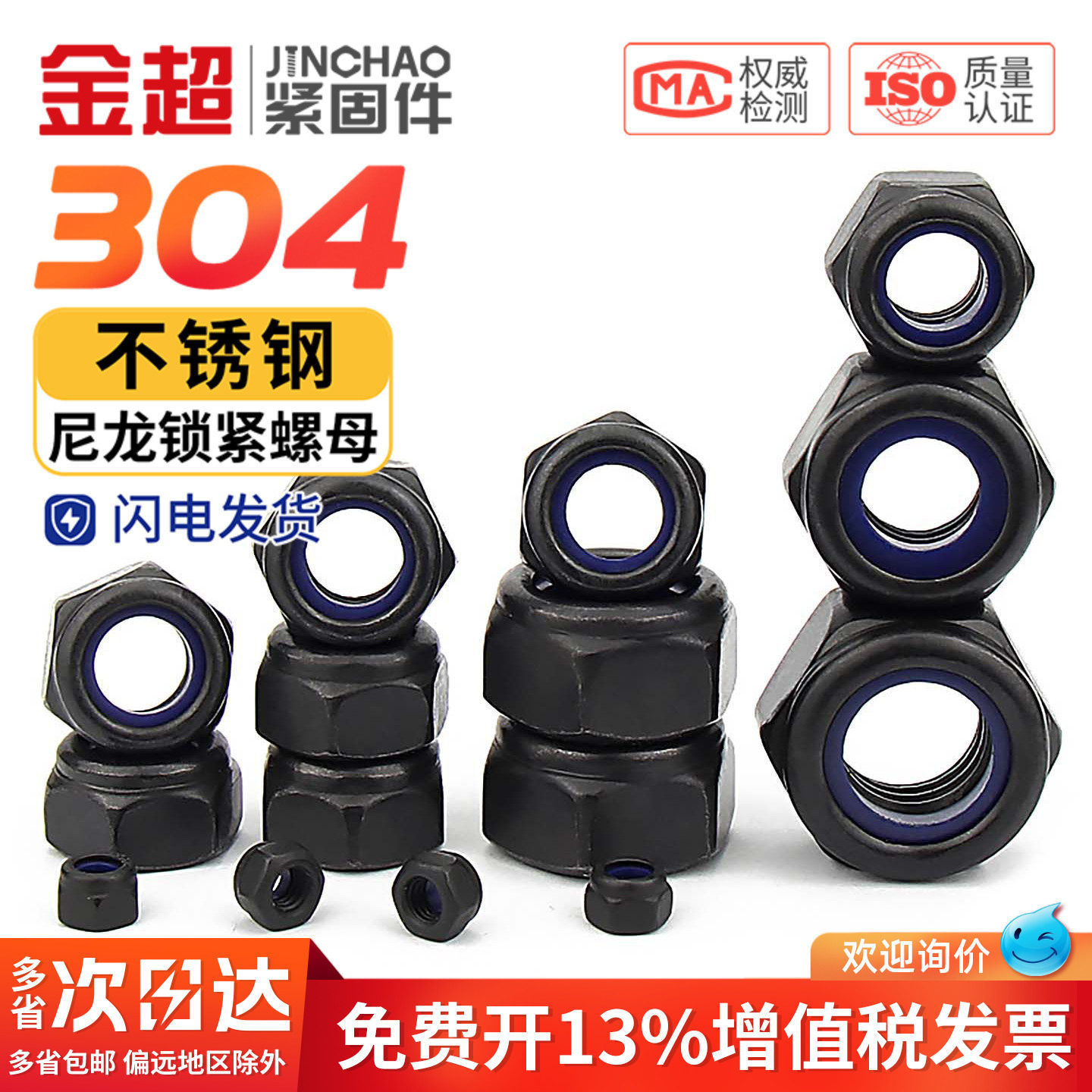 📚 黑色304不锈钢锁紧防松自锁螺母六角尼龙防滑螺丝帽M3M4M5M6M8M10