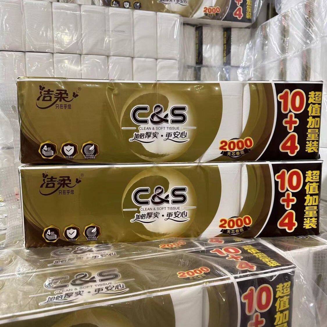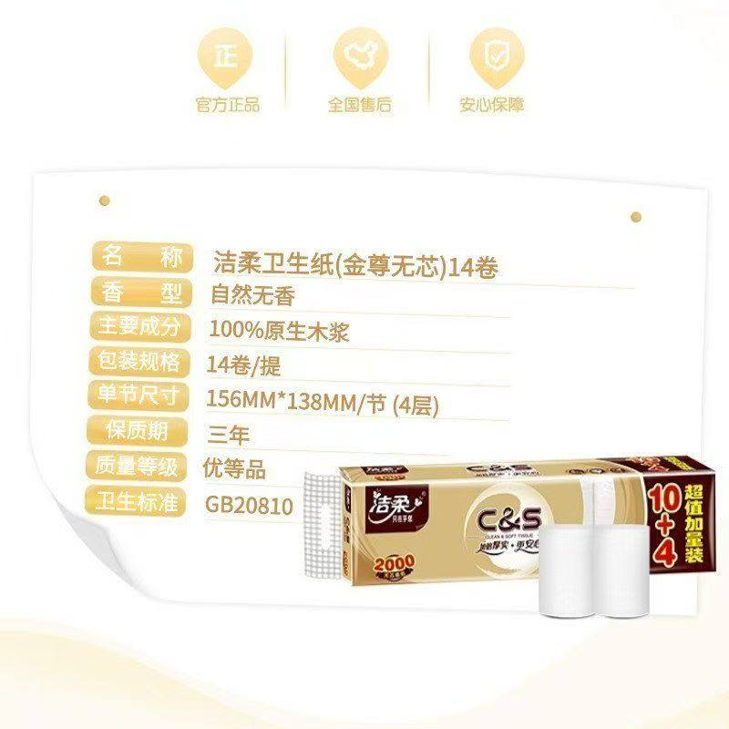 📚 洁柔无芯卷纸143克14卷4层加厚家用实心卫生纸厕纸2000g