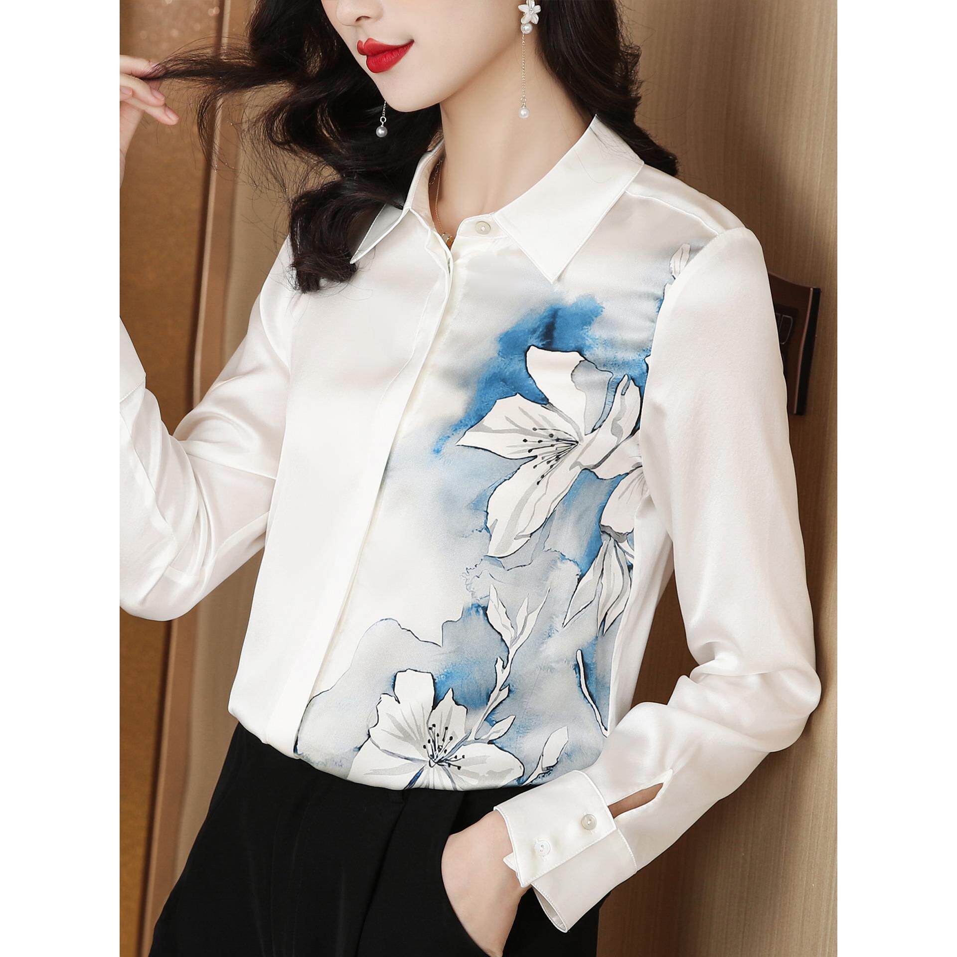📚 ROUMIKL时尚高端定位印花长袖衬衫女士秋装百搭气质显瘦衬衣洋气