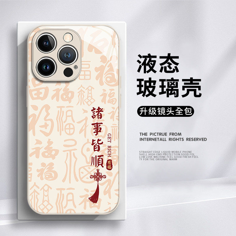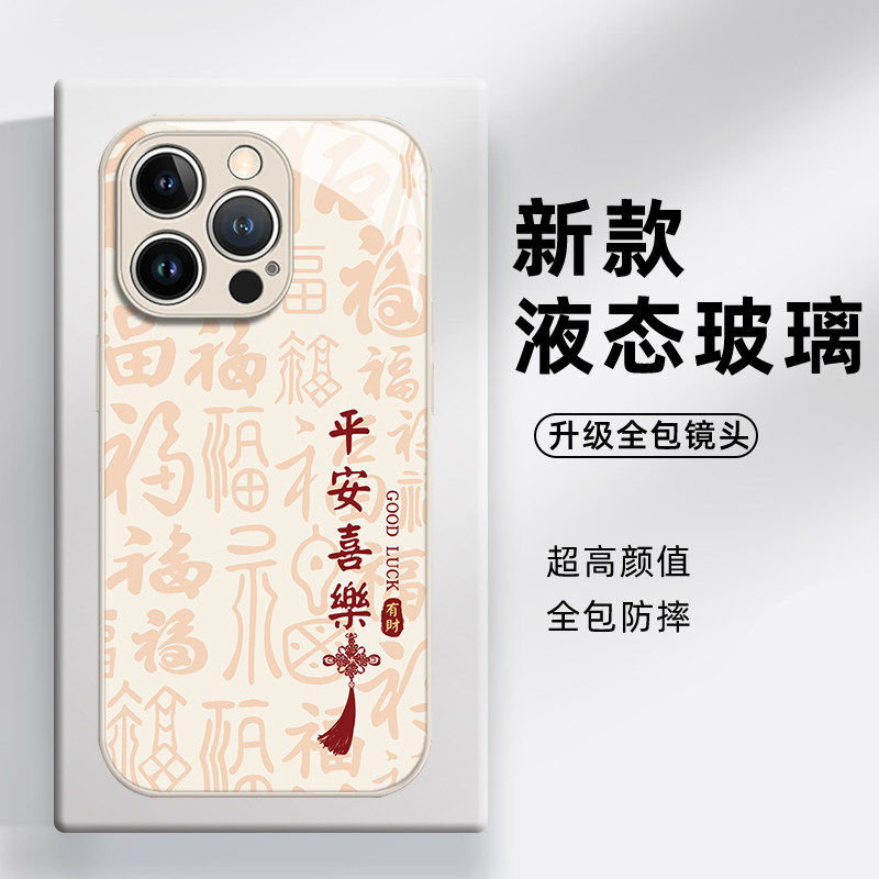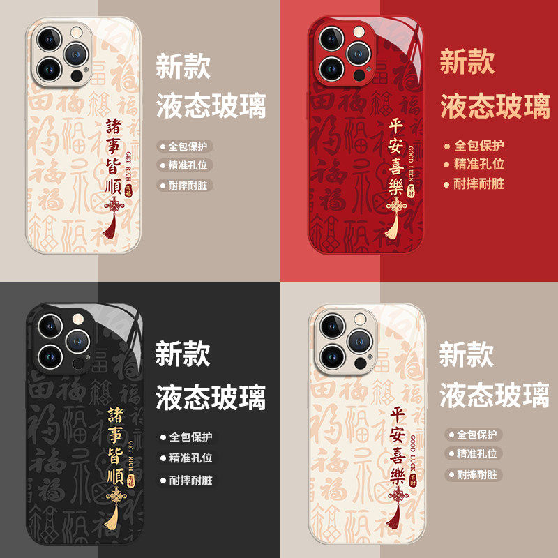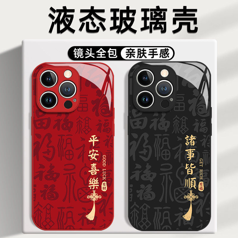 📚 诸事皆顺适用苹果17手机壳iphone16promax平安喜乐15情侣14plus福字13mini玻璃12新款11红色x新中式8/xr/xs/7