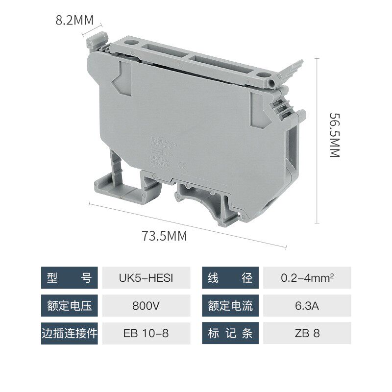 📚 UK5-HESI 5×20mm导轨式保险座 保险丝接线端子座 熔断座 50只