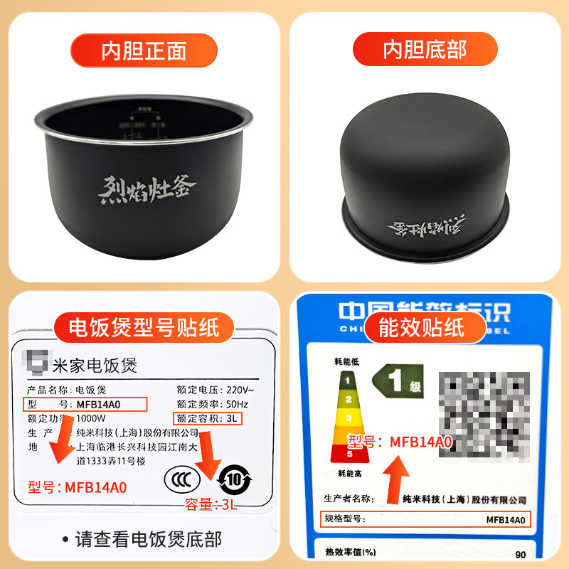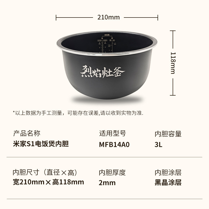 📚 适用于小米米家IH电饭煲S1 3升MFB14A0内胆内锅锅胆原厂原装配件