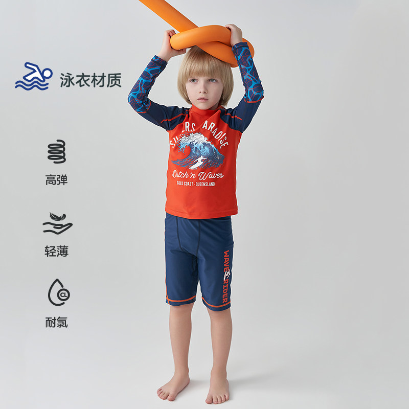 📚 爱慕儿童泳裤男童5分裤短裤男童耐氯高弹蓝色防晒沙滩游泳课