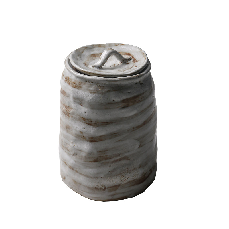 📚 叶日釉茶志罐手作粗陶存茶罐野式复古茶入陶瓷储物罐密封罐