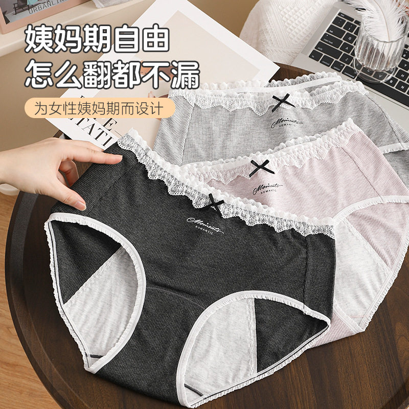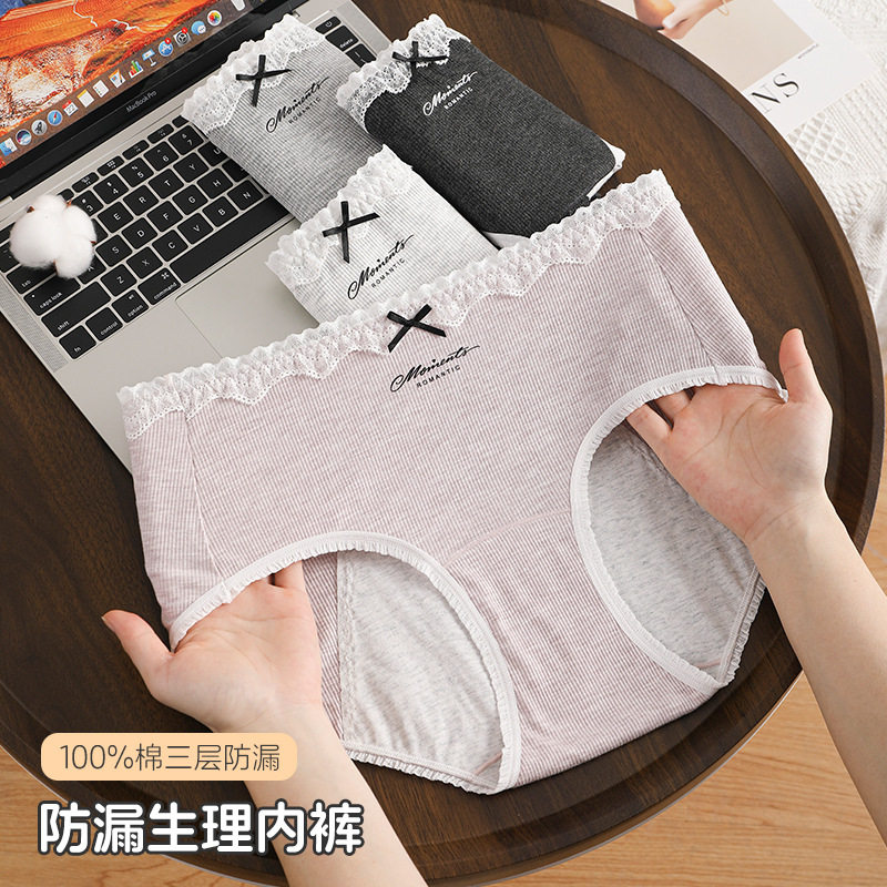 📚 两条装大码生理内裤女月经期三层防漏抗菌纯棉裆姨妈专用安全裤