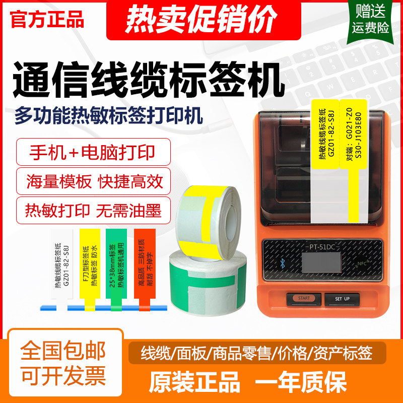 📚 普贴标签机PT-51DC热敏打印机线缆刀F型手机蓝牙电脑条码价格51DC