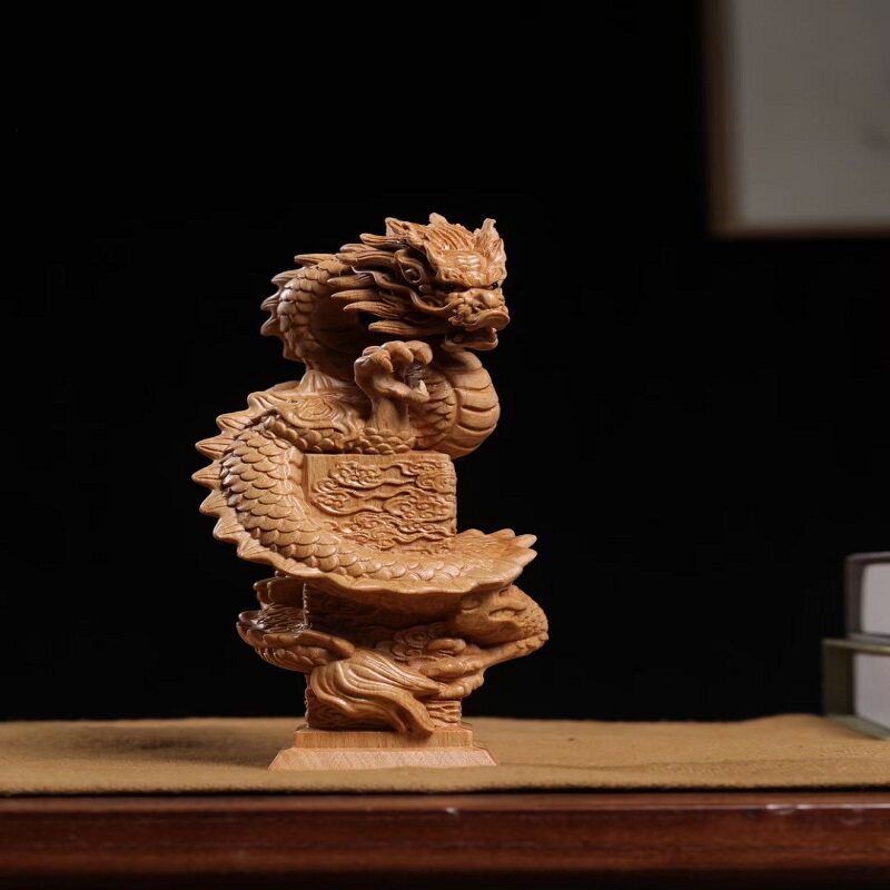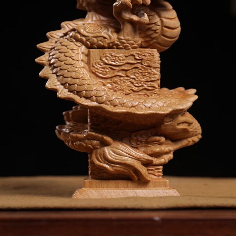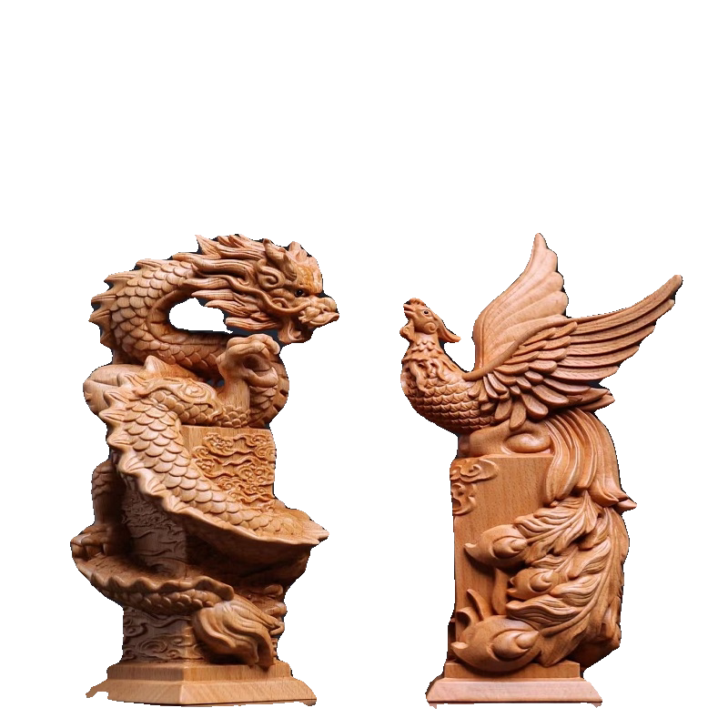 📚 榉木精雕龙凤呈祥摆件青龙凤凰装饰品客厅酒柜电视柜开业乔迁礼品