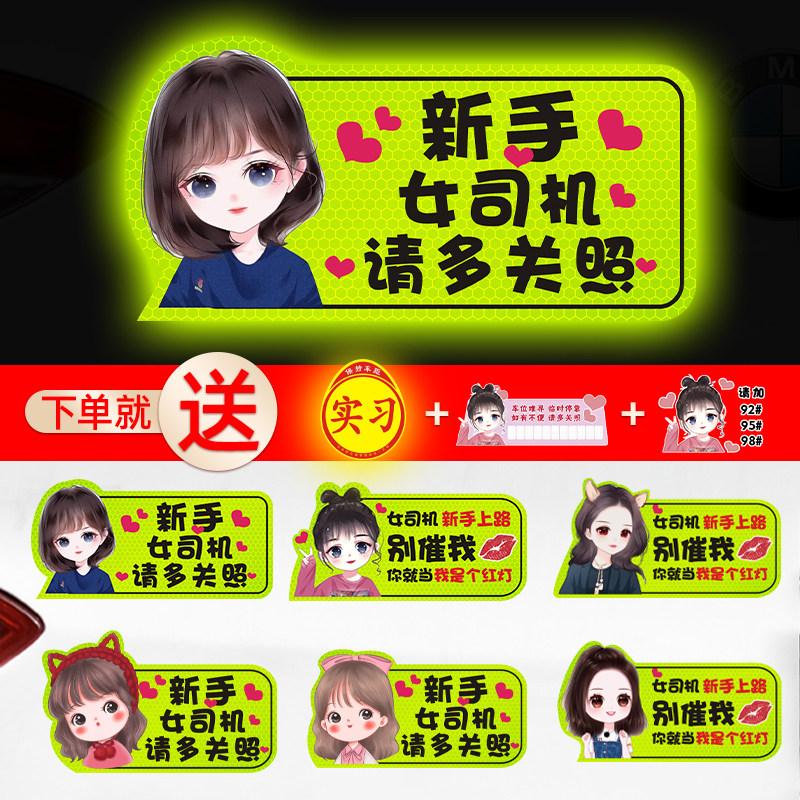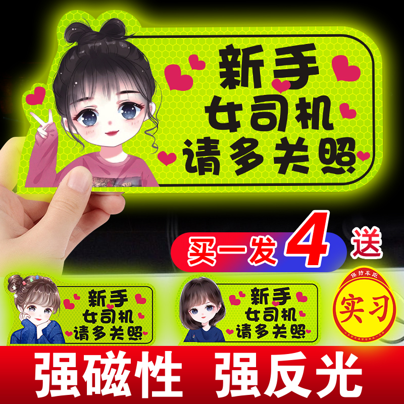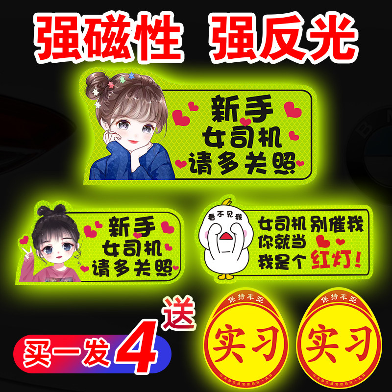 📚 实习期车贴新手上路反光标志汽车磁贴搞笑个性创意磁吸女司机贴纸