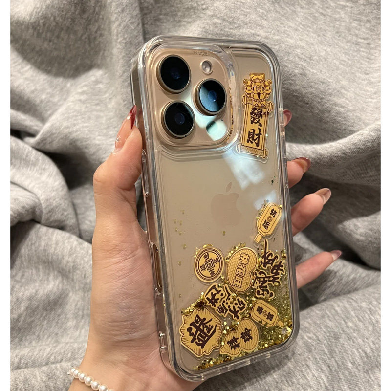 📚 金箔流沙财神适用苹果17promax手机壳新款iphone16PRO财神爷15pro高级感14plus国风15防摔pm透明13创意12小众