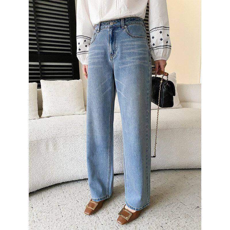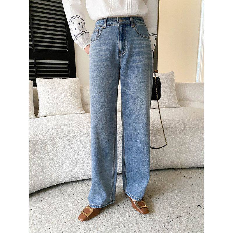 📚 司南 早春新款 简约百搭复古高腰显瘦宽松直筒阔腿牛仔裤 SN8628