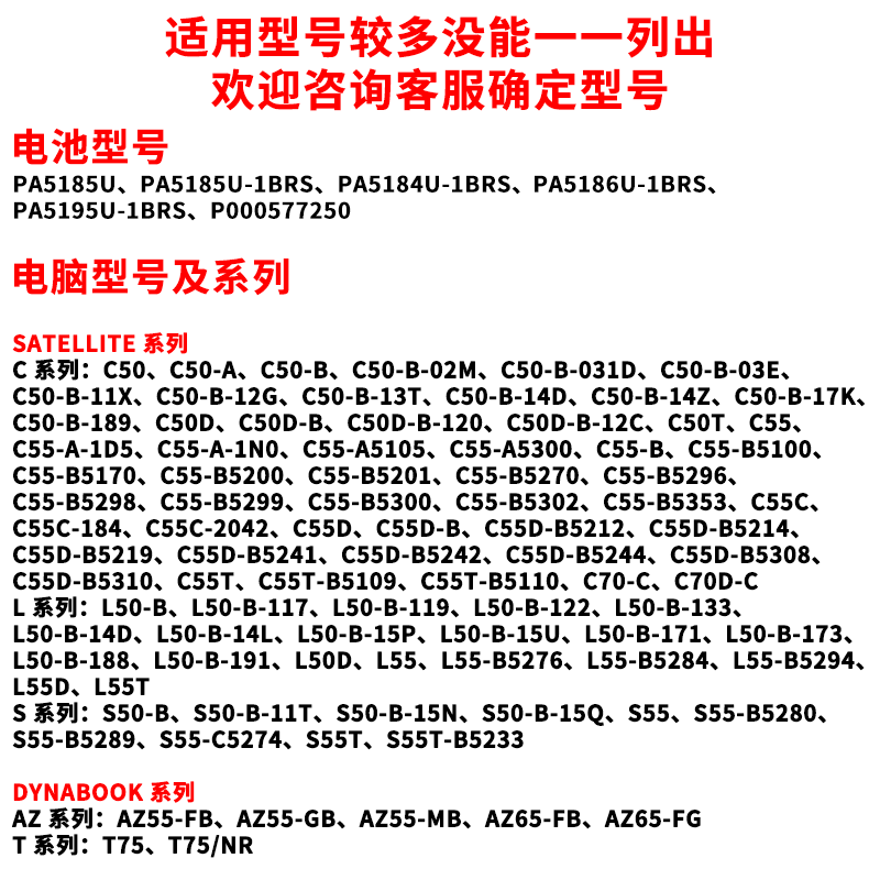 📚 全新适用东芝Satellite C50 C55D L55 PA5186U PA5185U笔记脑电池