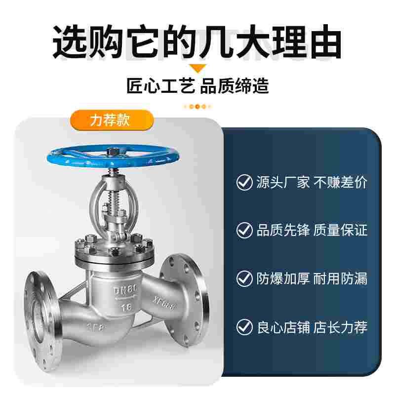 📚 304不锈钢法兰截止阀J41W耐高压40P手轮阀门DN65 80 100 125 150