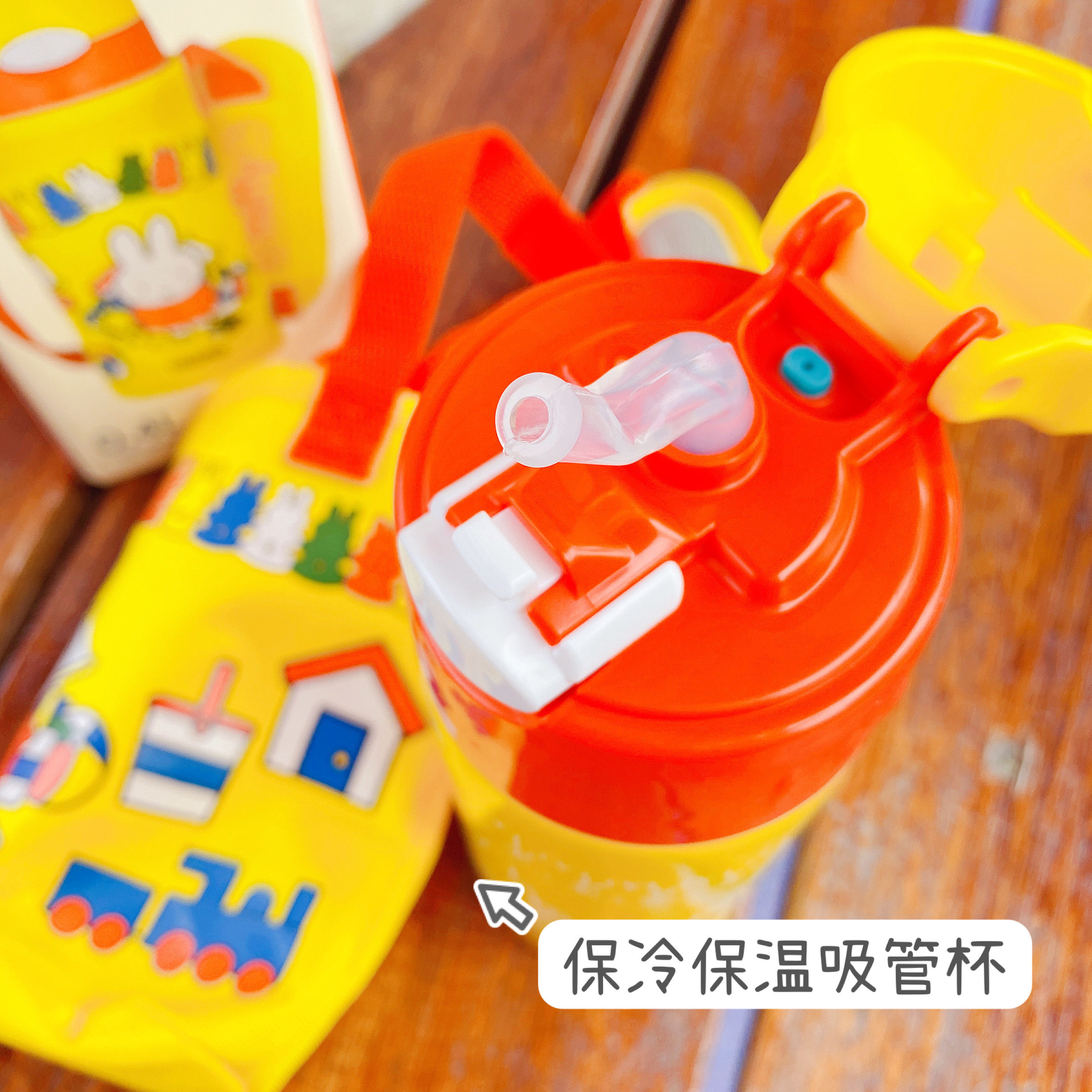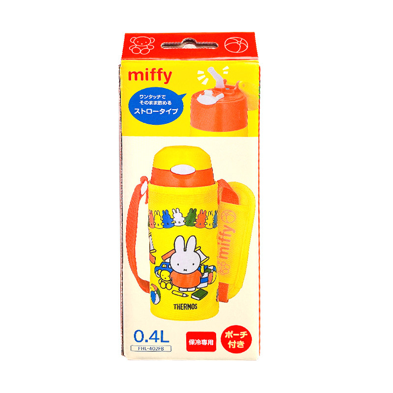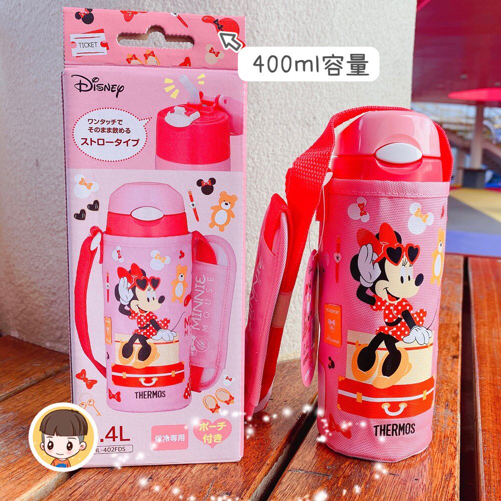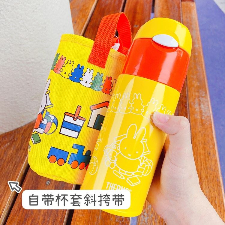 📚 日本膳魔师儿童保温吸管杯宝宝水壶不锈钢水杯带杯套斜挎带400ml