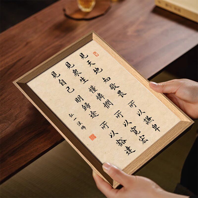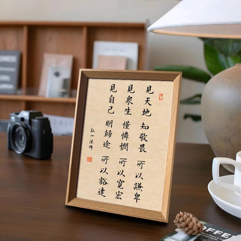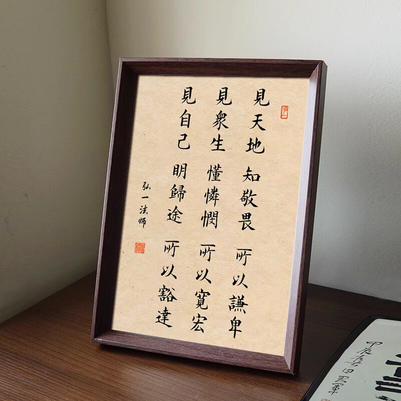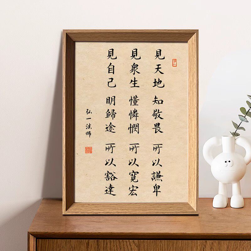 📚 弘一法师人生三见修身养性座右铭书法中式相框客厅玄关摆件装饰画