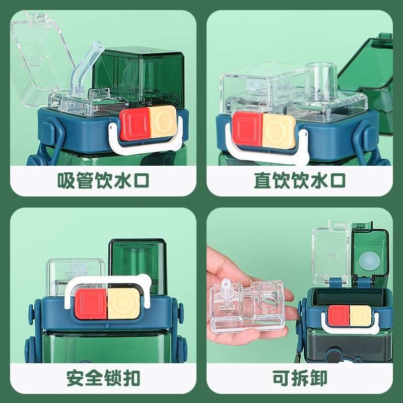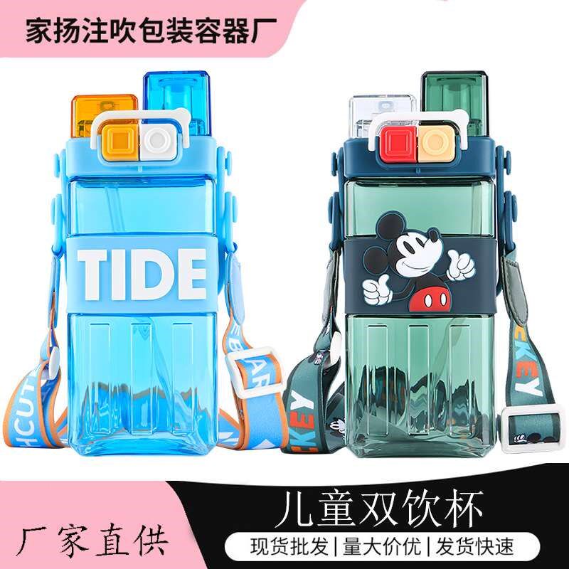 📚 网红双饮儿童f水杯方形背带幼儿园吸管杯夏季上学用直饮塑料杯