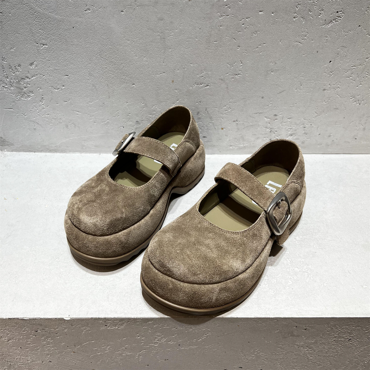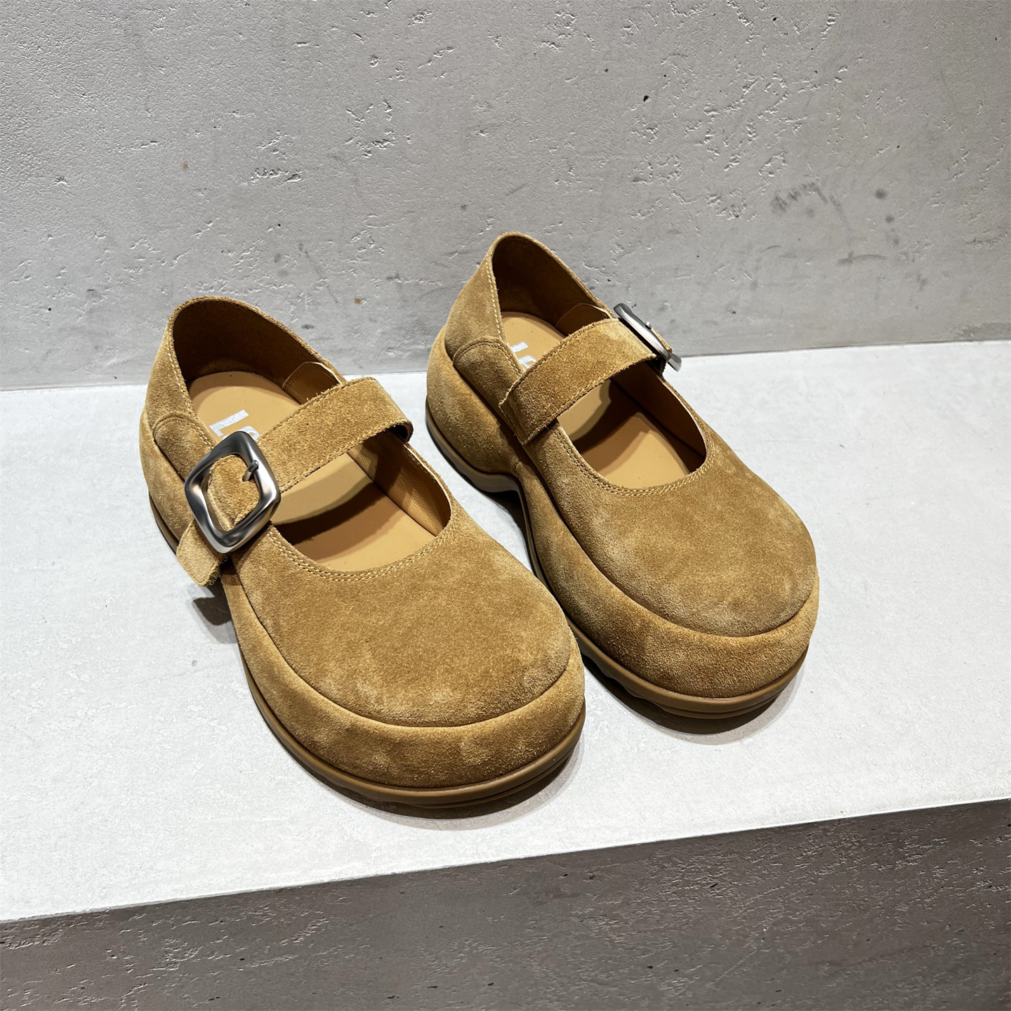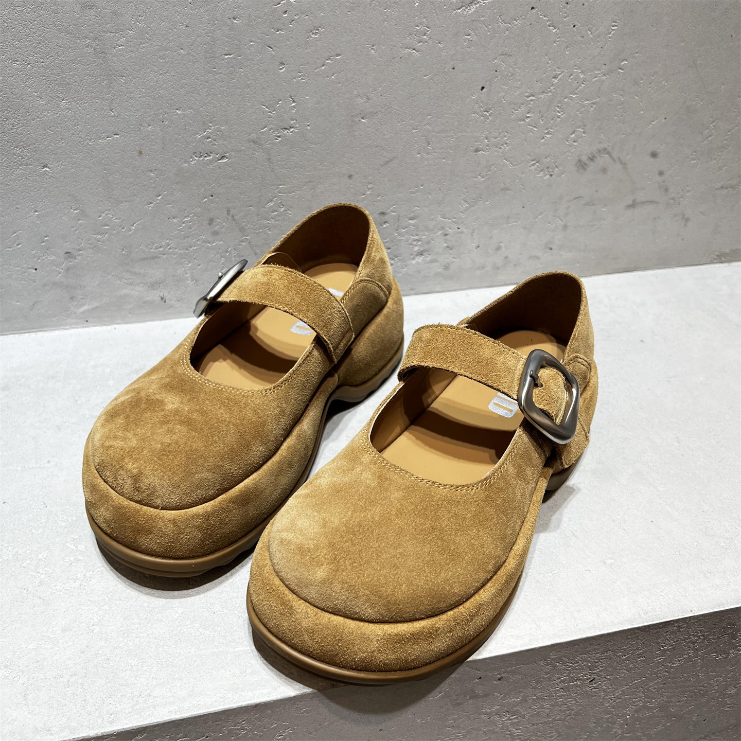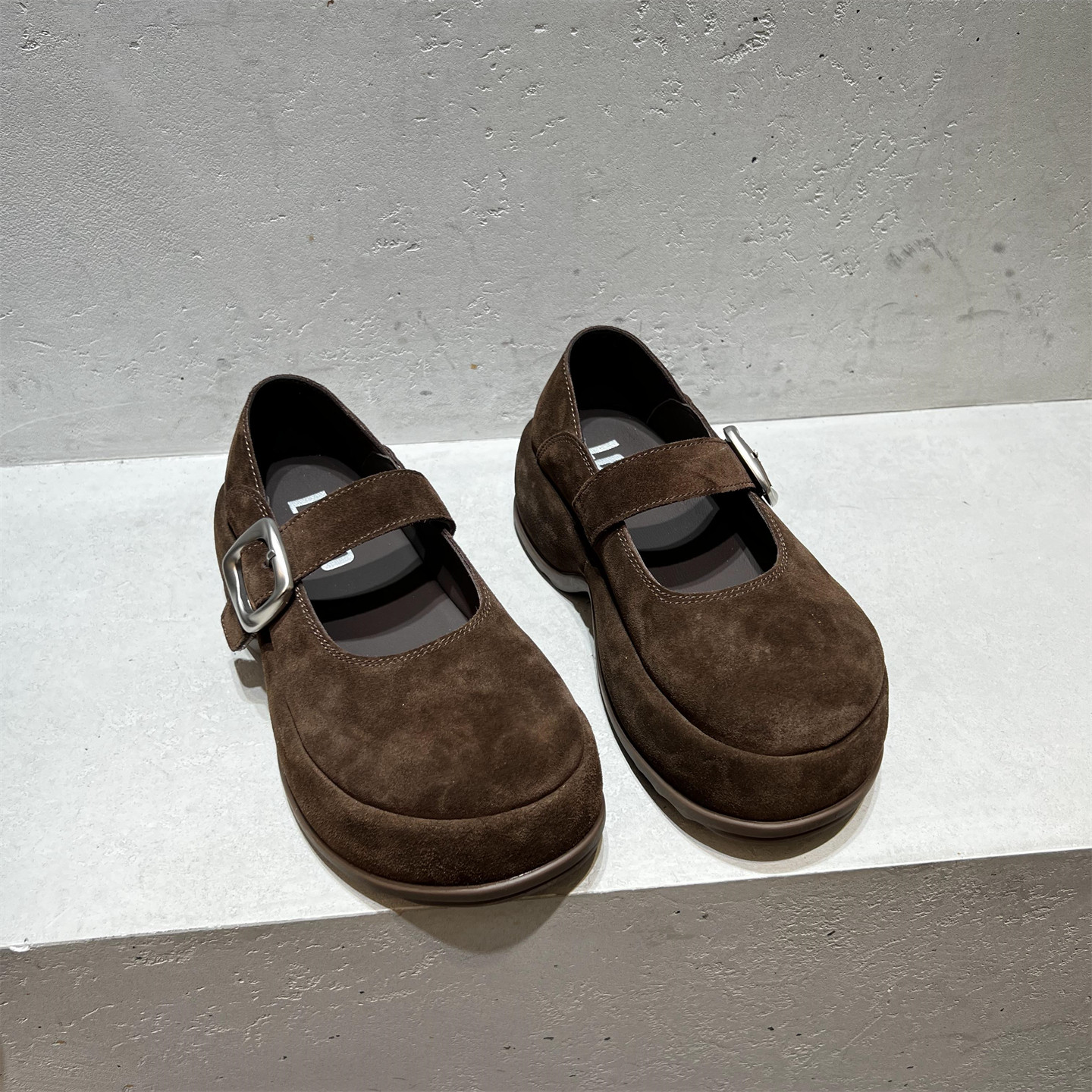 📚 欧洲站真皮磨砂玛丽珍鞋女2026春新款一字扣松糕厚底百搭勃肯鞋潮