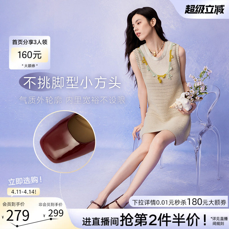 📚 百思图春秋商场新款法式红色玛丽珍鞋粗跟浅口女单鞋婚鞋F2166CQ5