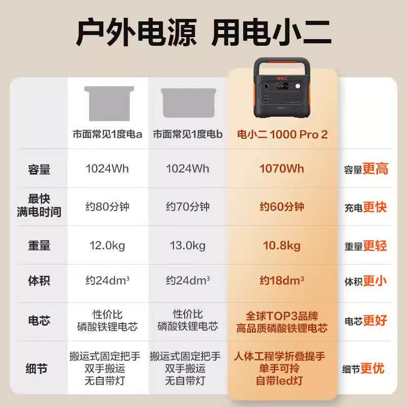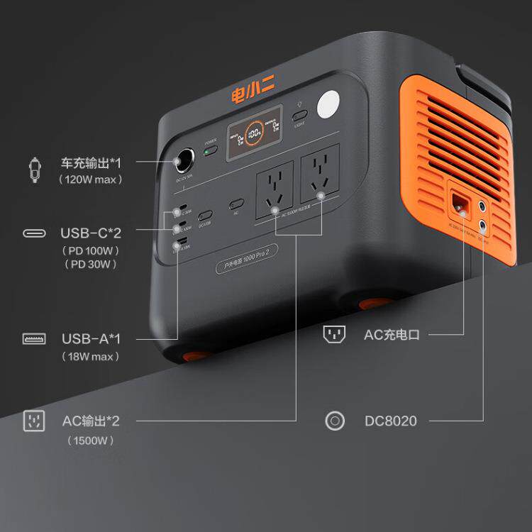 📚 电小二移动户外电源1000pro2 1500W 220V便携式露营应急储能电源