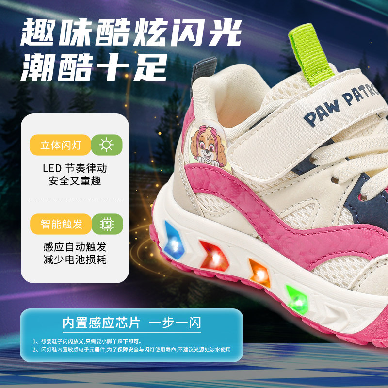 📚 汪汪队童鞋2026新款女童学步鞋春秋宝宝小童闪灯粉色儿童跑步鞋子