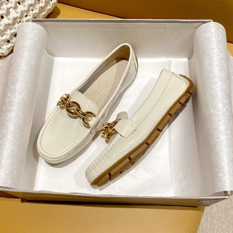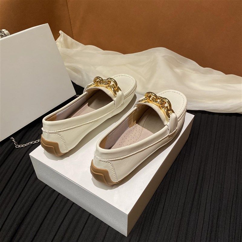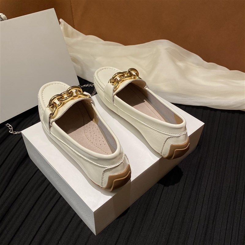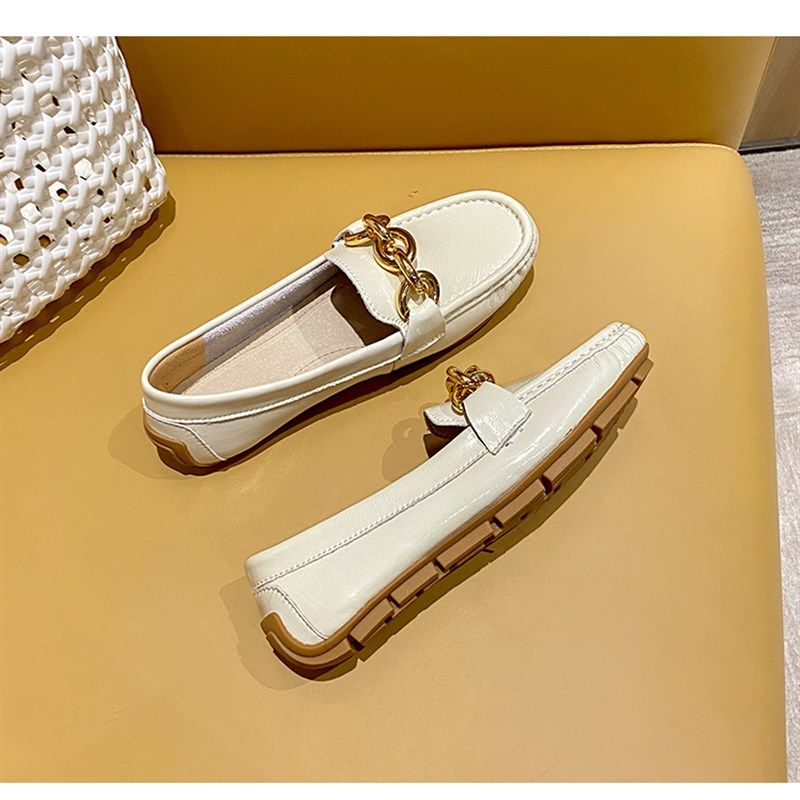 📚 鞋子女2024新款春秋豆豆鞋女圆C头链条单鞋女新款平底软底单鞋女